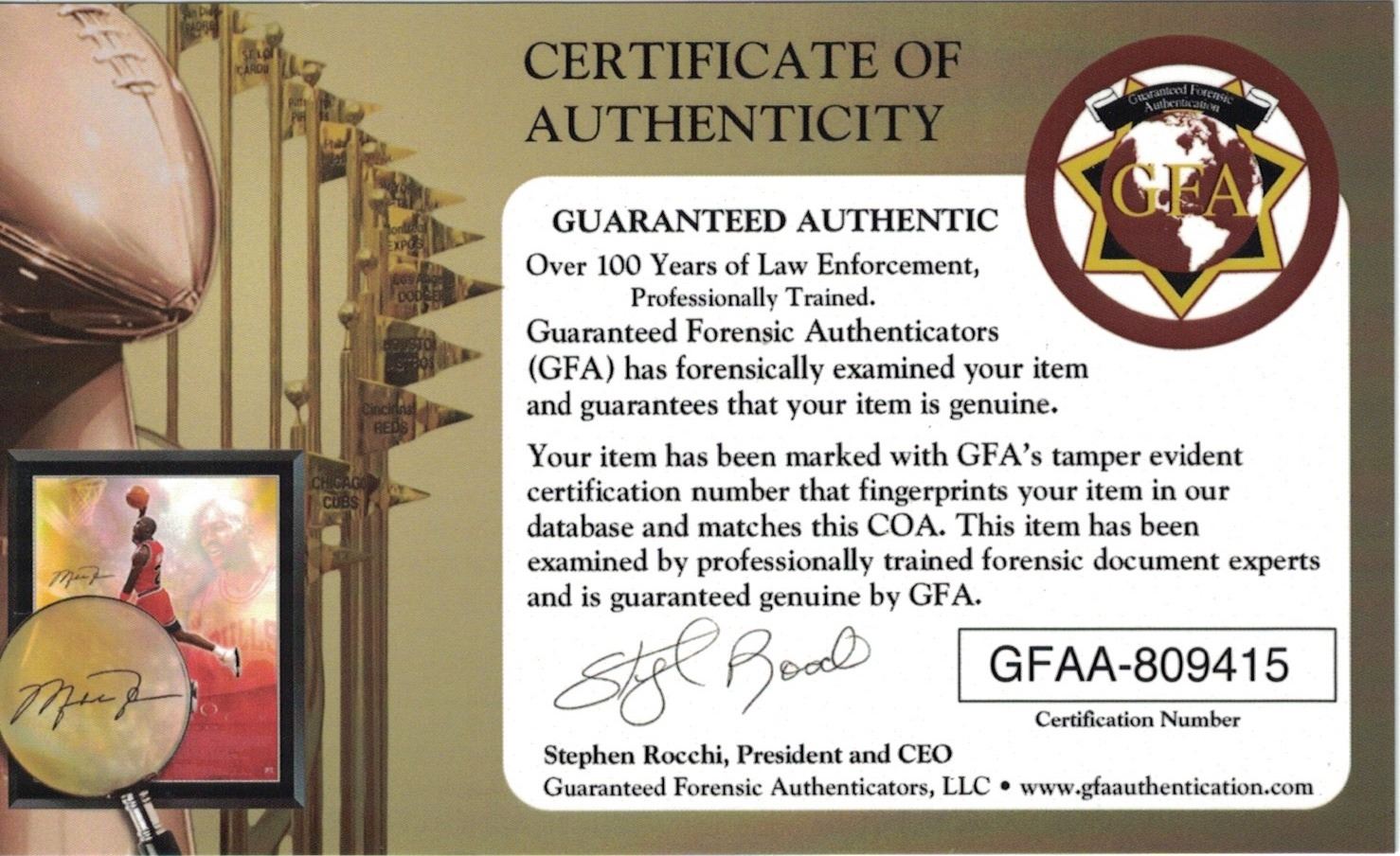 Regarding Memorabilia Items - All autographed memorabilia comes with a Certificate of Authenticity. Dalshire is not responsible for the opinions of any of the third-party authenticators. You should in no way rely exclusively on such third-party opinions without conducting your own due diligence prior to bidding.