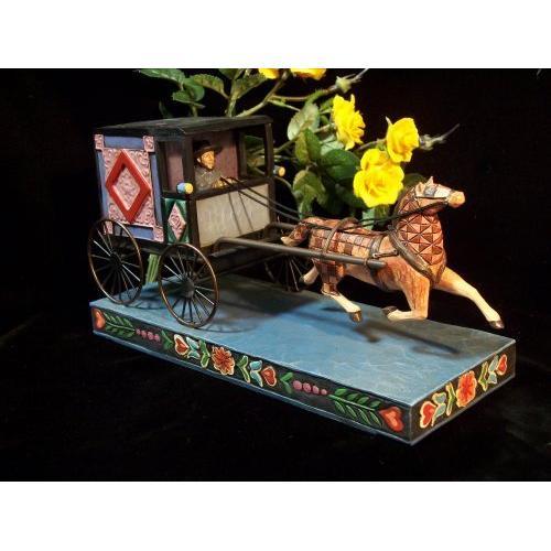 Jim Shore Amish Buggy W/ Horse - Amish man driving buggy, full of color. Stone resin, gift box packaged. Measures 9" x 5".