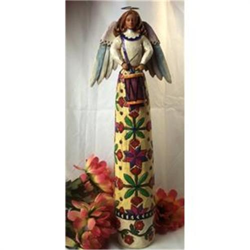 Jim Shore Tall Angel W/Drum - "Music Warms The Heart And Soothes The Soul" By artist Jim Shore, this beautiful piece makes a perfect gift or holiday decoration. Highly detailed figurine features colorful quilt patterns and a handcrafted look. Specifications UOM : EA height : 14.96in, materials : Stone Resin