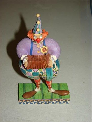 JIM SHORE CLOWN STATUE TITLED "SQUEEZEBOX". STANDS 9" TALL. AS SHOWN. VIEW PICTURE FOR DETAIL.
