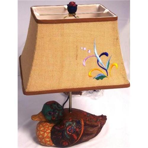 Jim Shore Duck Lamp - Jim Shore Heartwood Creek Duck Decoy Lamp and Shade. Uses one 40 watt bulb. Specifications UOM : EA height : 19.5in, materials : Burlap.,Polyester 100%.,Stone Resin.