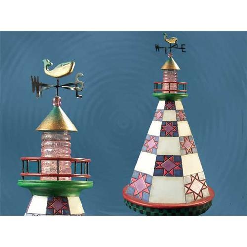 Artist Jim Shore's admiration for the majestic presence of lighthouses inspired this new series called Shorelights. Each piece is unique, with an intricate, quilt-like pattern. Constructed of stone resin, this piece measures 10.25H and 5.5"W