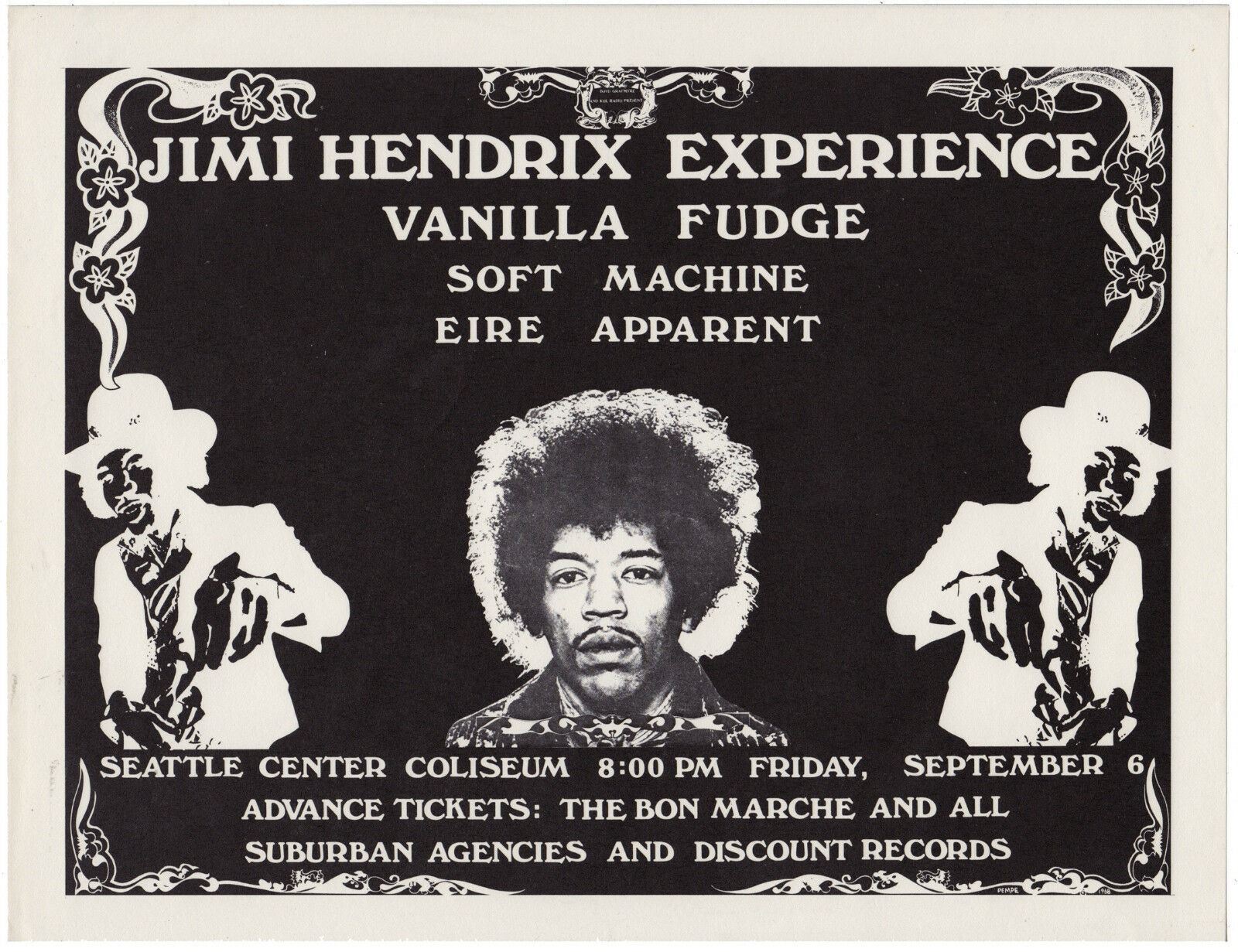 JIMI HENDRIX / Vanilla Fudge / SOFT MACHINE Authentic 1968 Seattle Concert Handbill