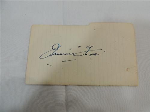 JIMMIE FOXX CUT SIGNATURE AUTOGRAPH NO COA. AS SHOWN. VIEW PICTURE FOR DETAIL. PLEASE BE ADVISED, AND INFORMED REGARDING SIGNATURES OR AUTOGRAPHS THAT WE SELL AT AUCTION: WE ARE NOT AUTHENTICATORS, AND WE DO NOT AUTHENTICATE, OR VALIDATE ANY AUTOGRAPHS OR SIGNATURES THAT WE OFFER AT AUCTION. SOME AUTOGRAPHS OR SIGNATURES MAY COME WITH AN AUTHENTICATION FROM ANY ONE OF LITERALLY HUNDREDS OF AUTHENTICATORS ACROSS THE COUNTRY, AND AROUND THE WORLD. WE DO NOT ENDORSE ANY AUTHENTICATOR, NOR DO WE GUARANTEE THAT ANY AUTOGRAPH OR SIGNATURE IS AUTHENTIC, OR THAT IT WILL PASS AUTHENTICATION BY ANY AUTHENTICATOR. ALL AUTOGRAPHS OR SIGNATURES ARE SOLD