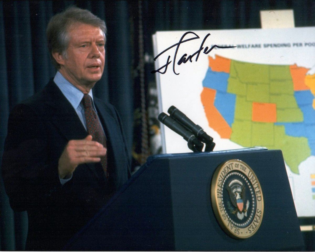 A 10x8 inch signed photo by former president Jimmy Carter.