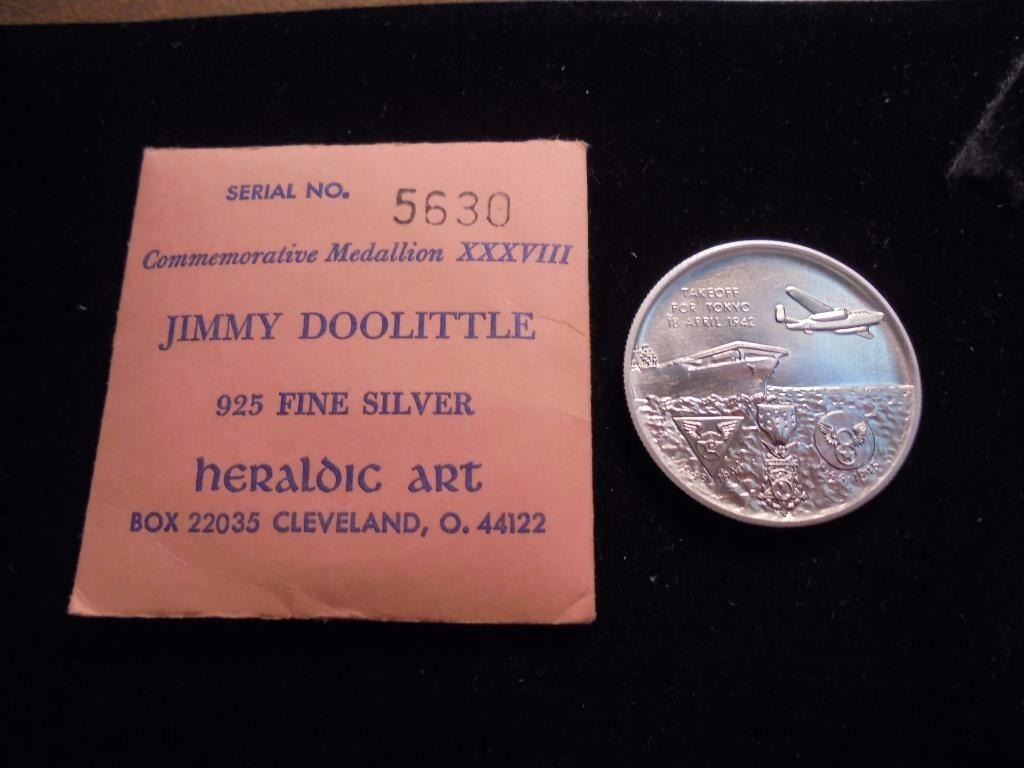 JIMMY DOOLITTLE STERLING SILVER COMMEMORATIVE MEDALLION XXXVIII, BY HERALDIC ART, ORIGINAL PACKAGING