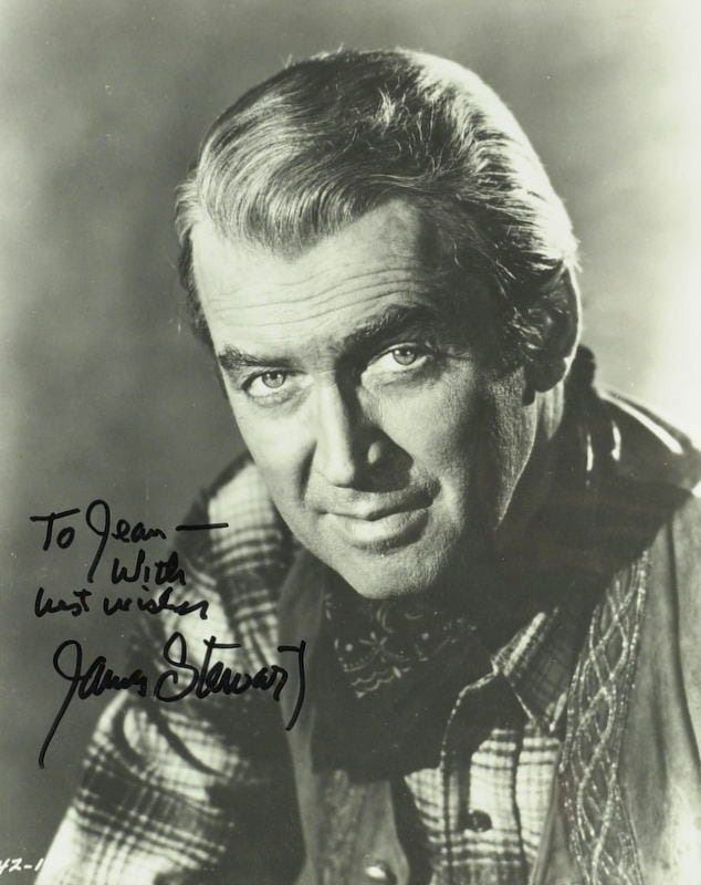 8x10 inch black and white photo signed by legend James Stewart. With coa.