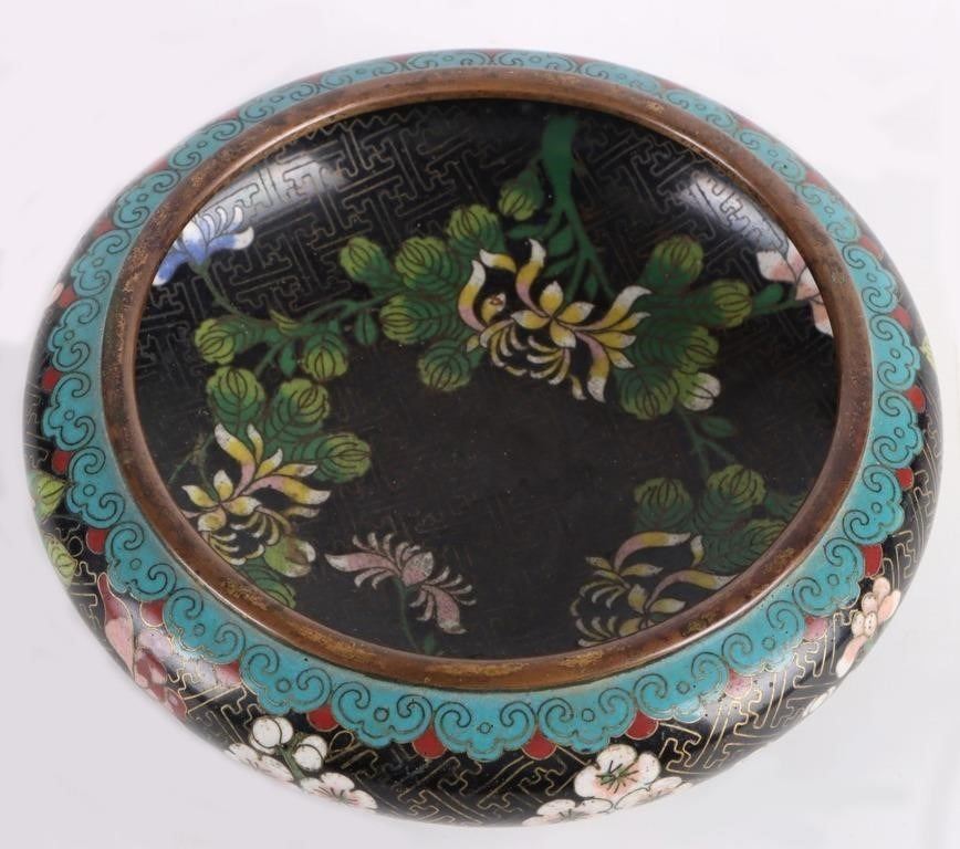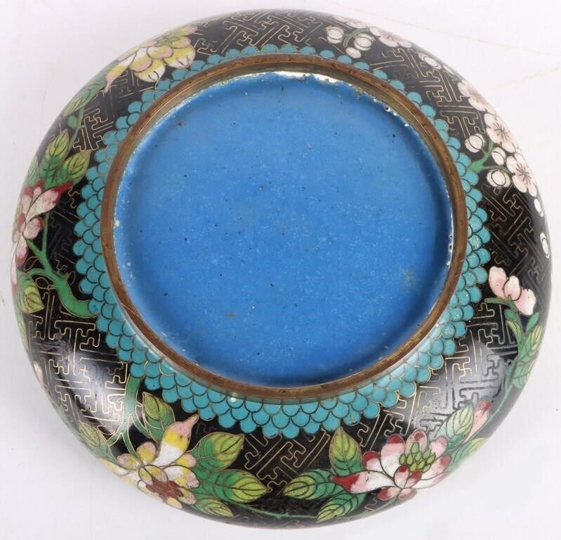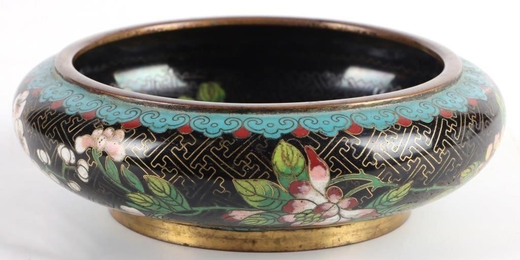 Jingfa cloisonne enamel on brass 6" bowl. This bowl is beautifully done in a beautiful plum blossom motif.