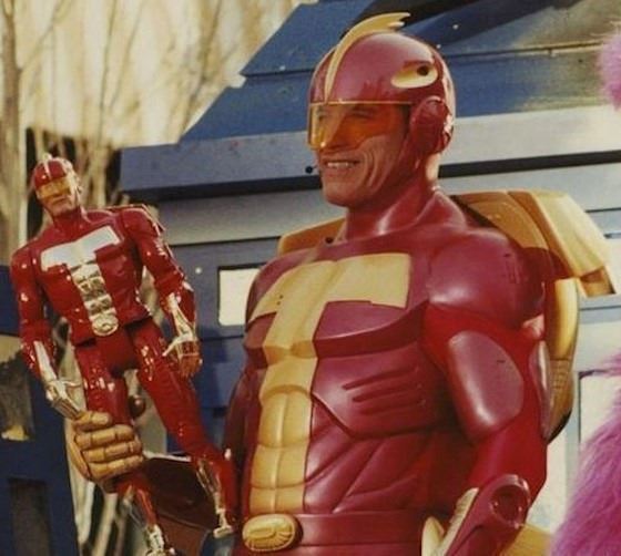 JINGLE ALL THE WAY TURBO MAN HELMET W/ VISOR & COWL ON ARNOLD SCHWARZENEGGER BUST SUPER HERO!