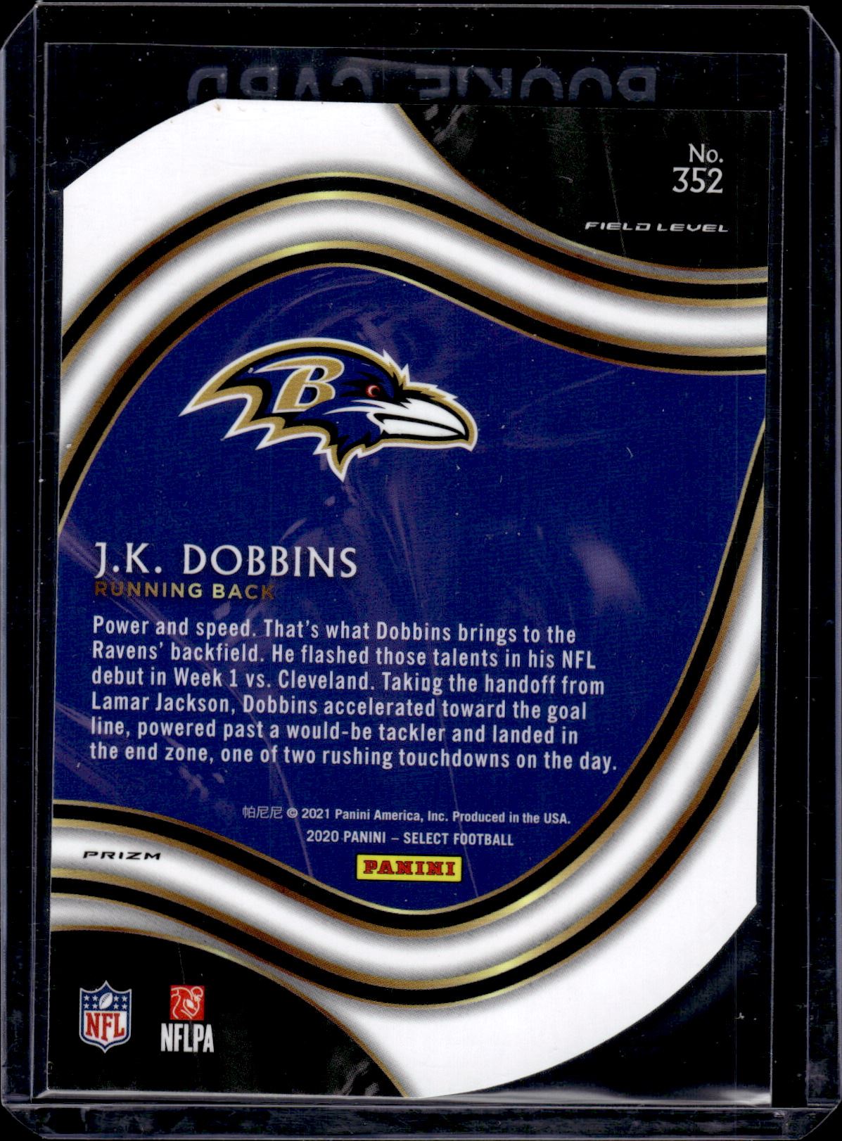 JK Dobbins Field Level Purple Prizm Die Cut RC 2020 Select #352