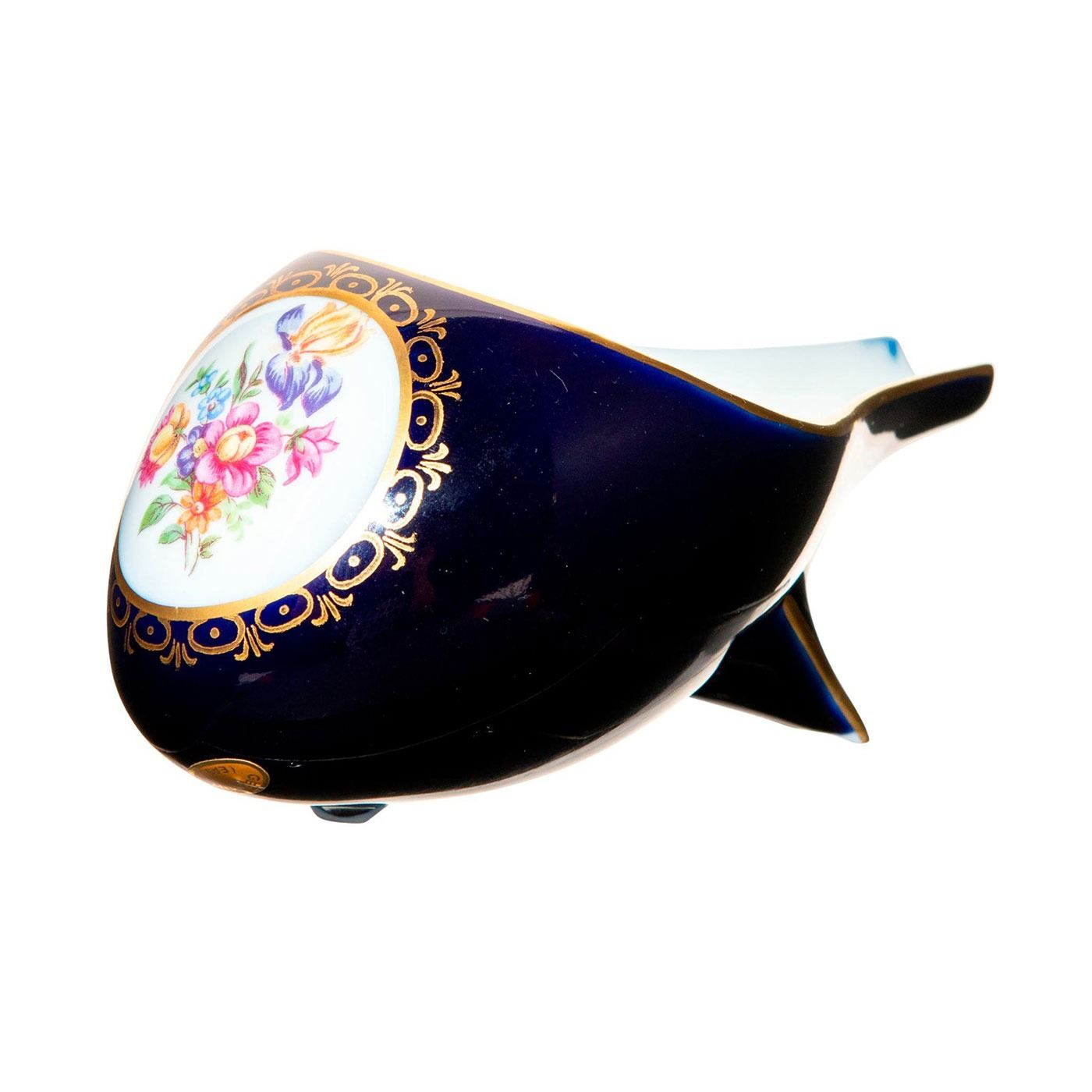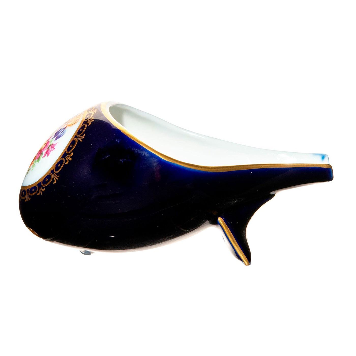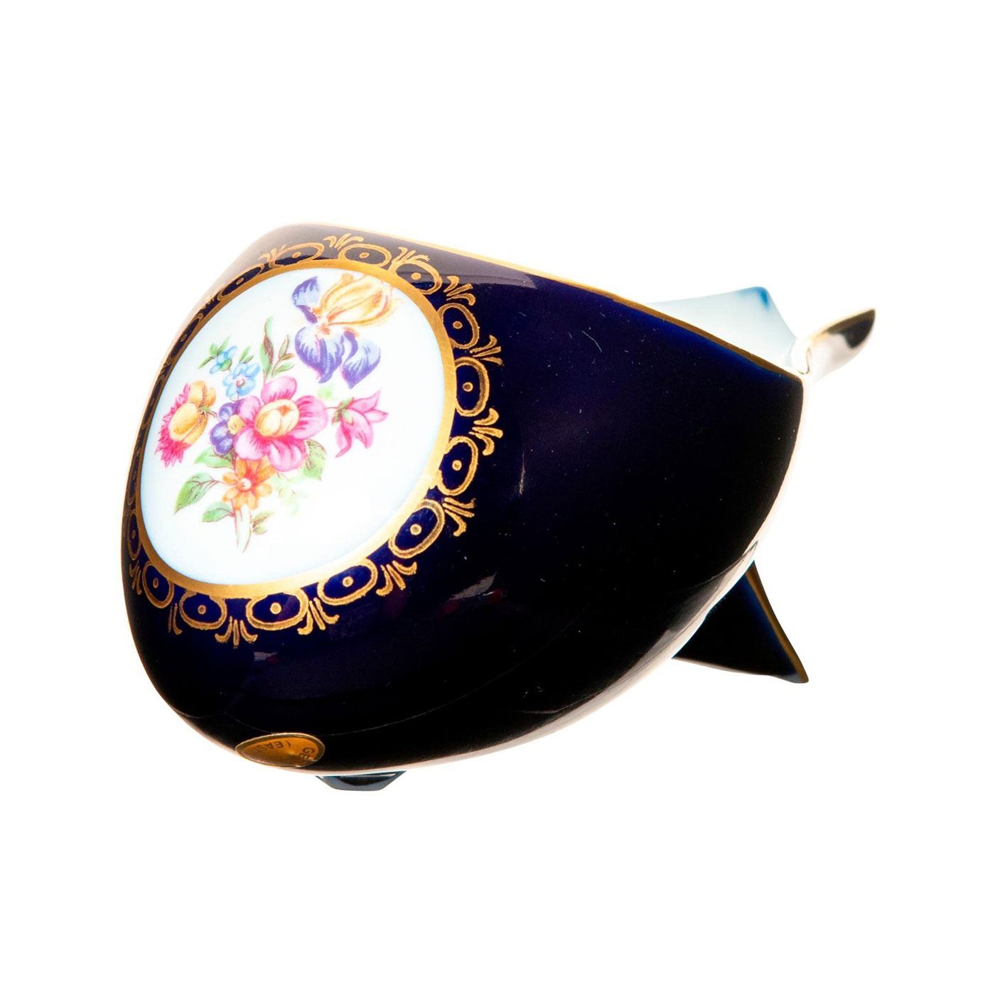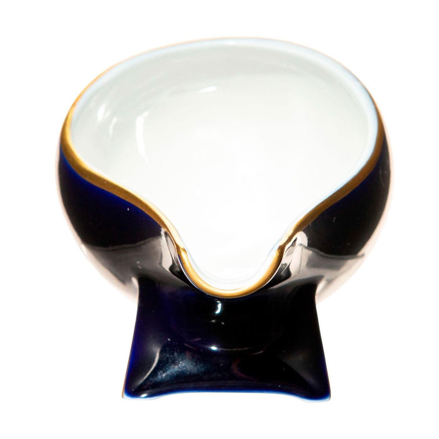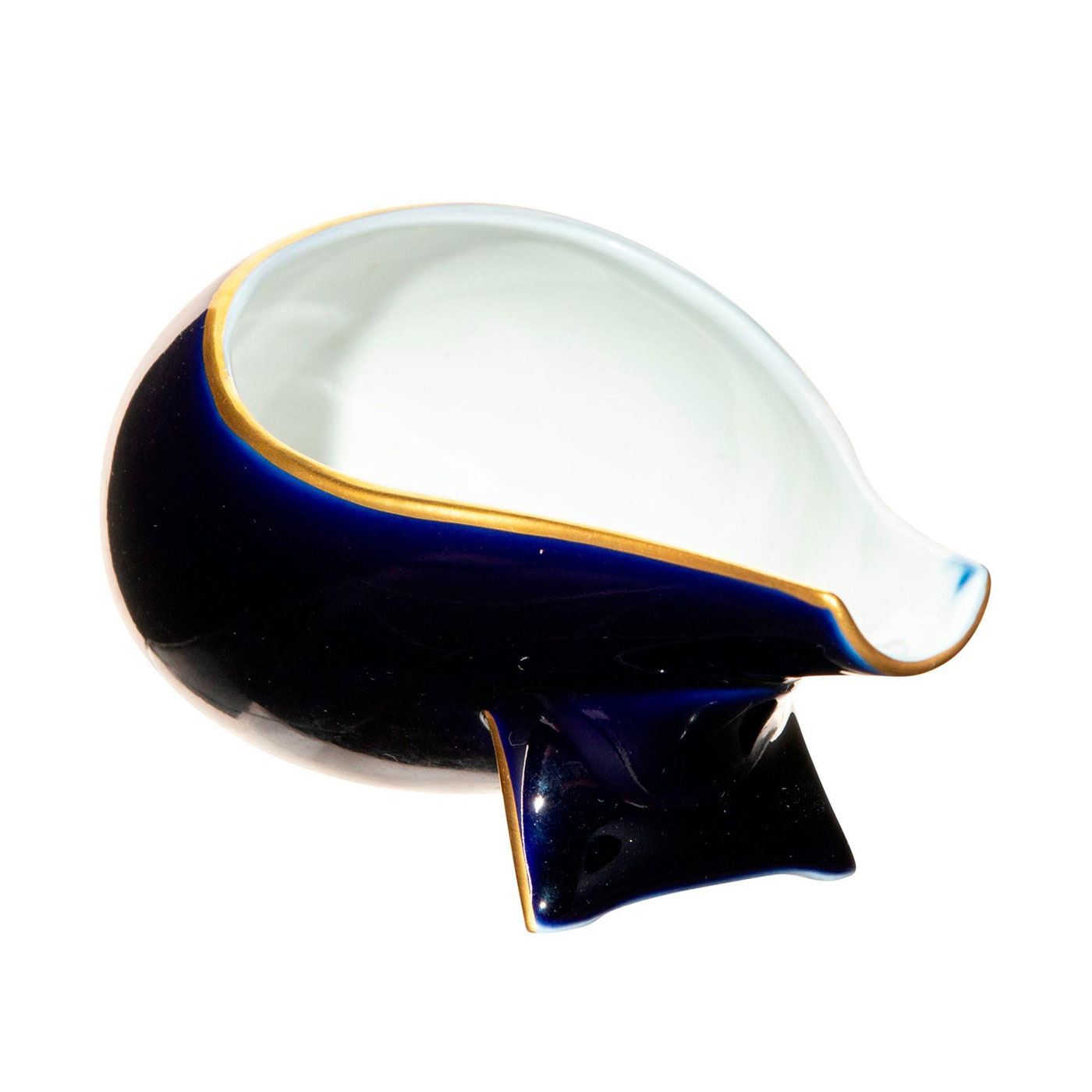 Vintage cobalt blue and gilded spoon rest with a multicolored floral design on the front. Graf Von Henneberg Porzellan backstamp. Echt Kobalt stamped on the bottom. Tiny chip on the bottom.