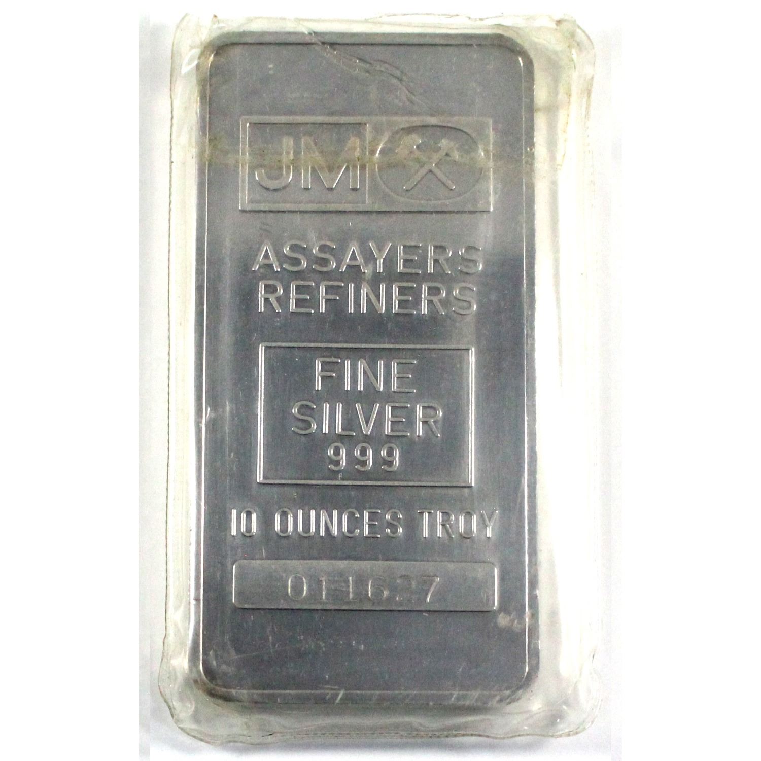 JM 10oz Fine Silver Bar Blank Back variety. Serial# 011627. (Tax exempt)