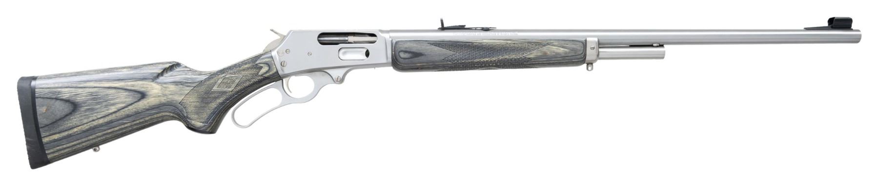 Cal. 45-70. S# 94210935. Mfg. 2006. Bbl. 24" w/ broached rifling. Stainless steel construction. Sporting sights. 4 Shot tubular mag. Checkered laminated stock w/ black pad. CONDITION: all aspects near excellent showing minimal wear. Very good shiny rifling. (25-4774/MD). MODERN. $1,500-2,000.