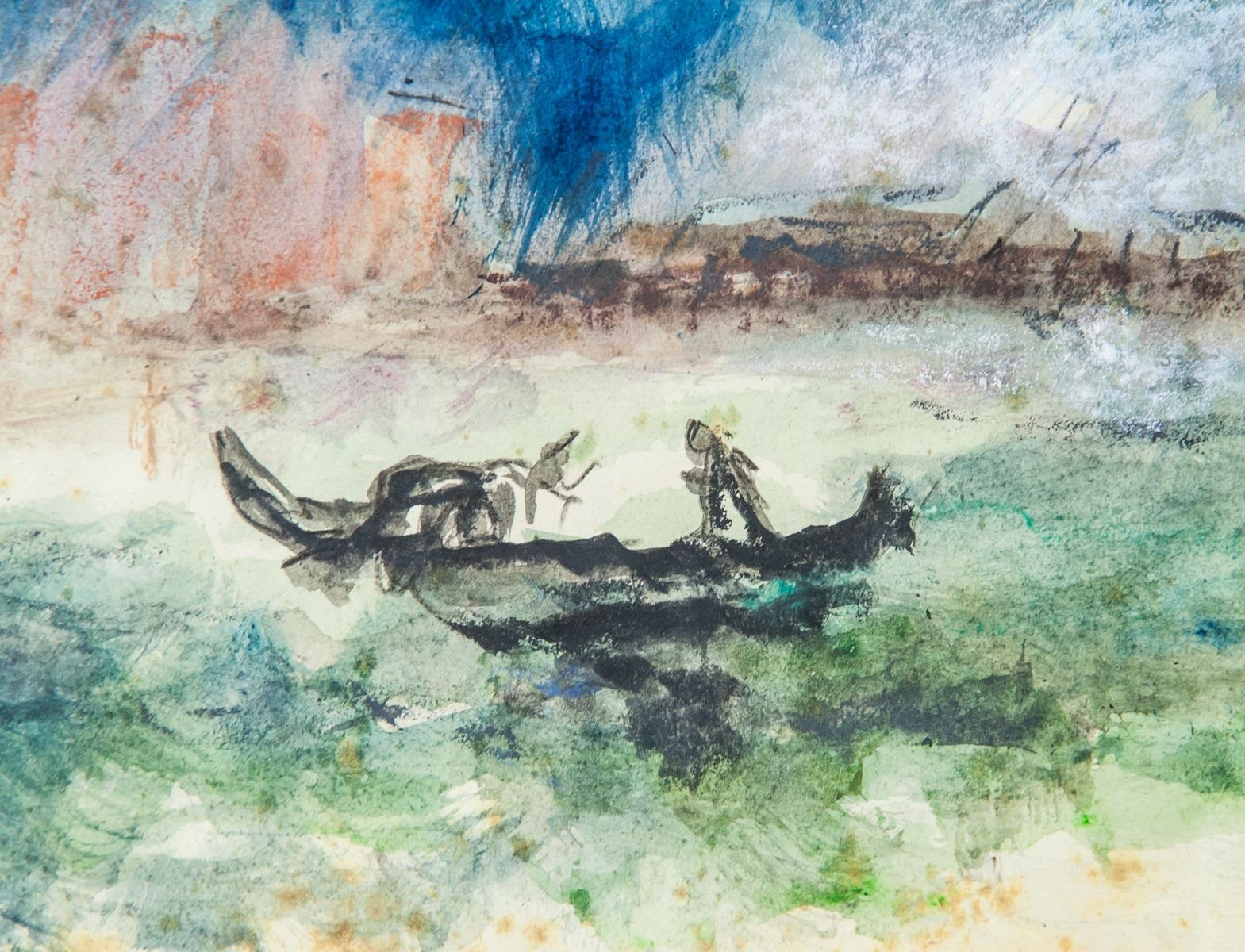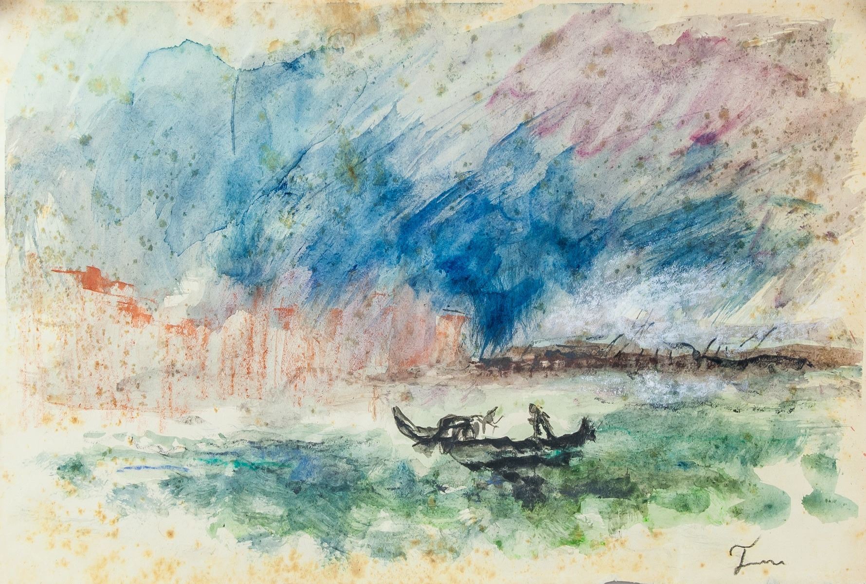 Watercolor on paper. Featuring a landscape scene. Signed Rutner on the lower right corner. Attributed to JMW Turner (1775-1851, British). 20.5 x 30 cm (8.1 x 11.8 inches).