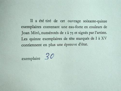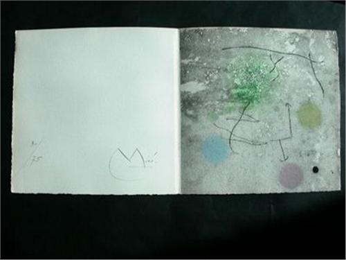 The item also includes the complete book "Cration Mir" by Yvon Tailandier from 1961. with numbered justification page and beautiful color images by Miro.