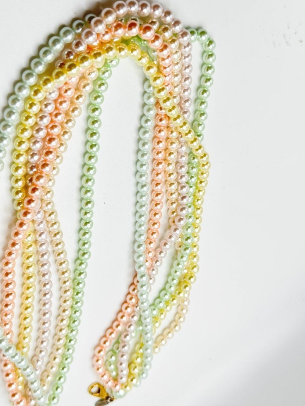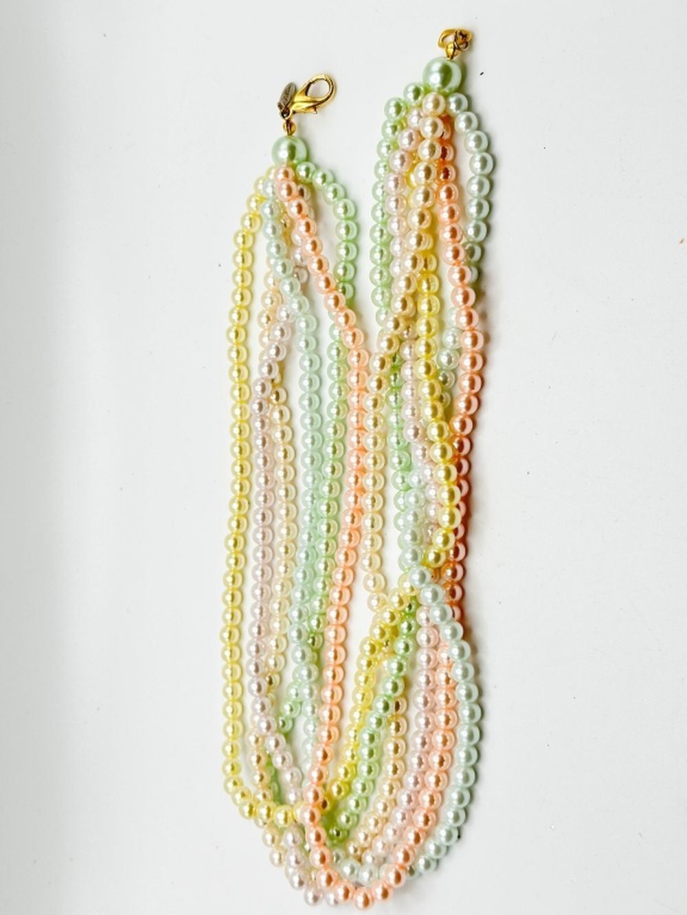 JOAN RIVERS MULTI STRAND PASTELS COLOR NECKLACE IN PEARL LIKE MULTI COLOR VINTAGE JOAN