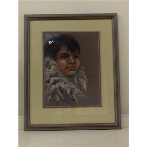 PASTEL DRAWING: JoAnn Flesch pastel depicting a Native American child. This picture is dated 1984 and signed J Flesch. It measures 19" x 15.5" framed.
