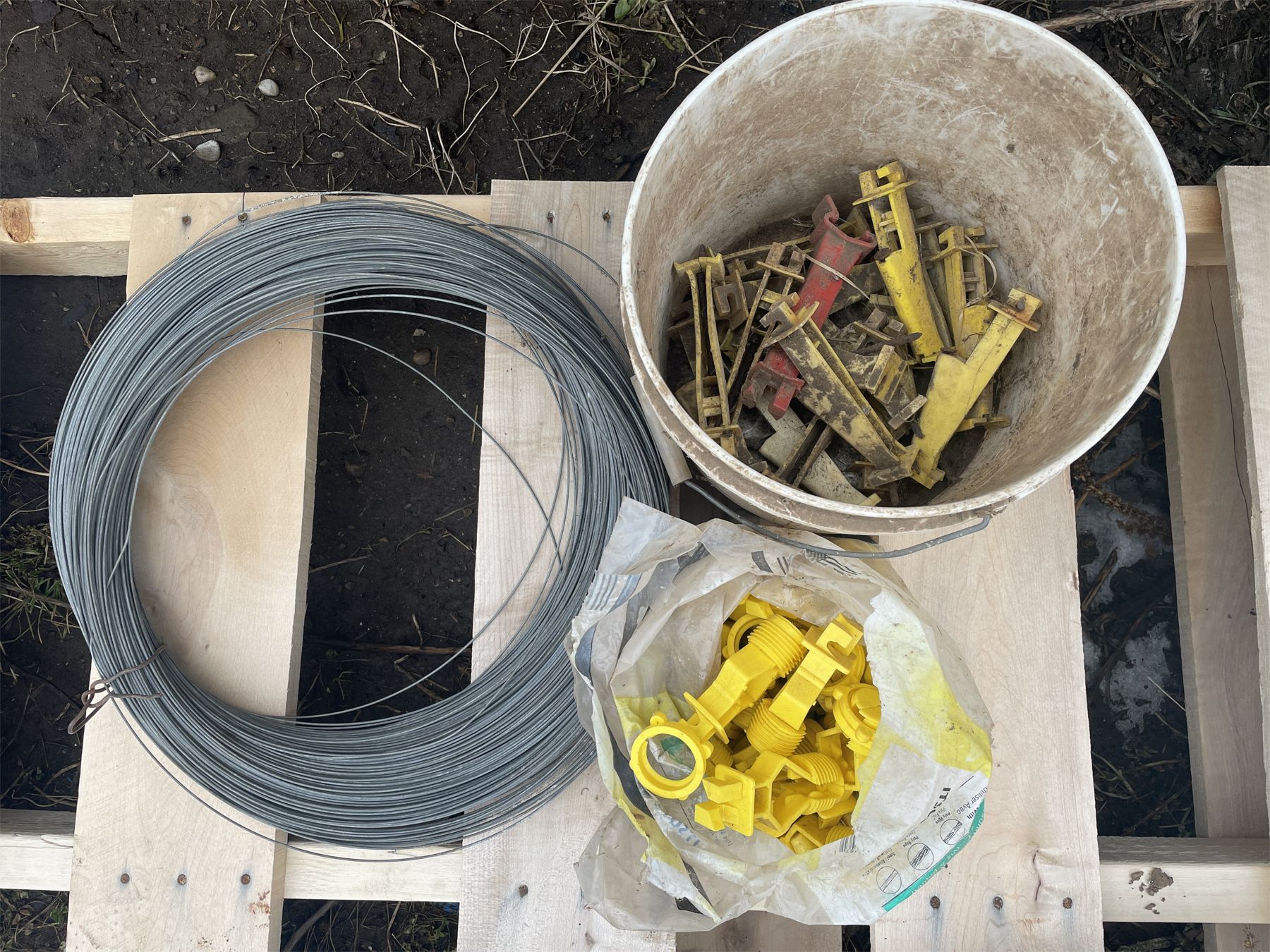 NEW ROLL OF WIRE, APPROX 40+ INSULATORS