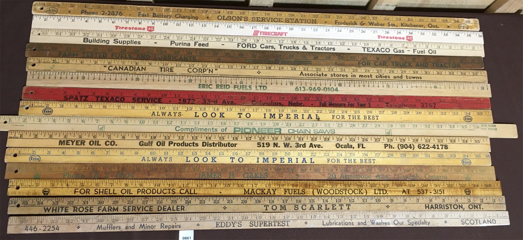 JOB LOT - FUEL COMPANY VINTAGE YARD STICKS - SHELL, ESSO, TEXACO, CITY SERVICE, SUPERTEST, WR, ETC