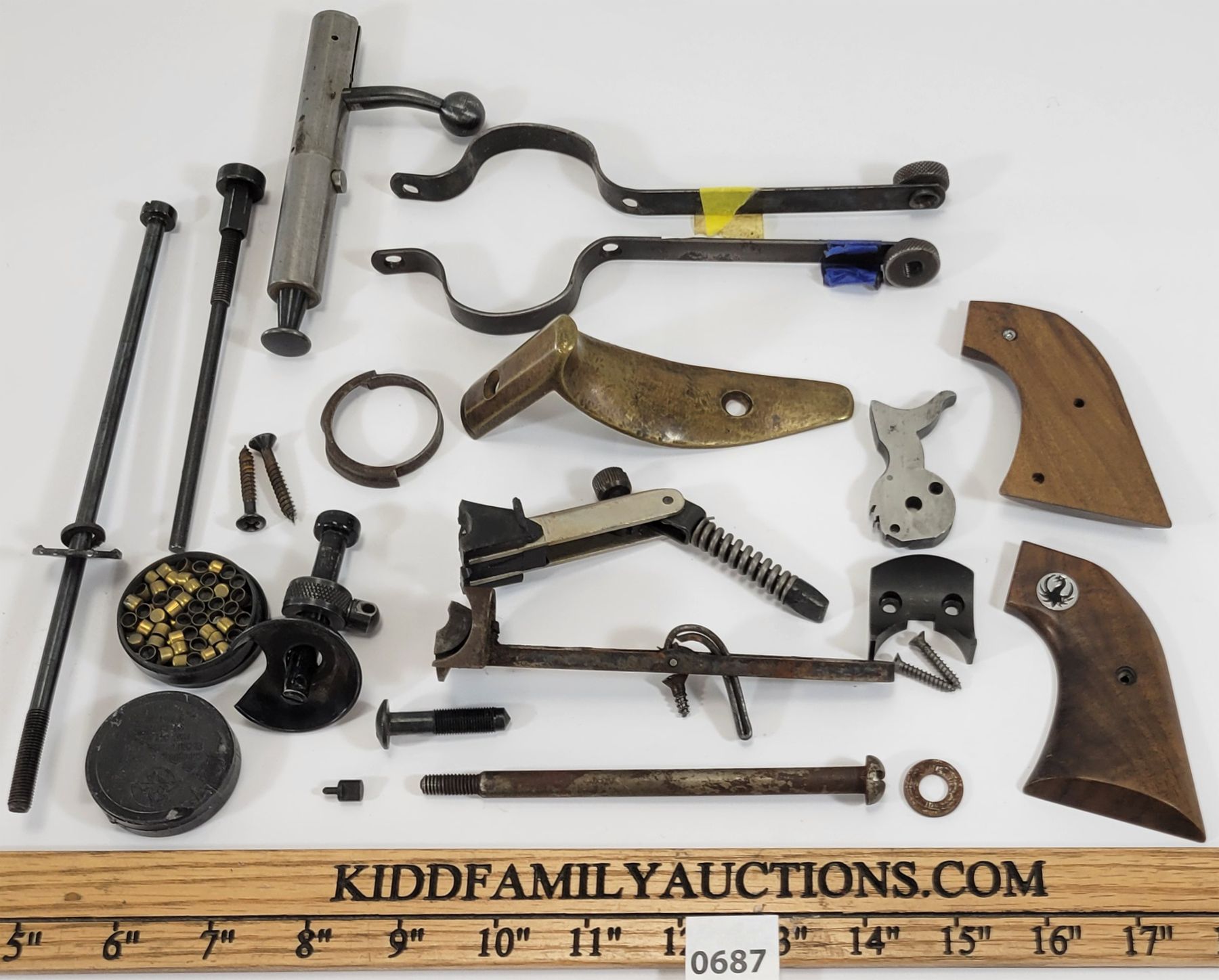 KIDD FAMILY AUCTIONS does not guarantee or make warranties on any lot sold. Ratings in the catalog are our opinion. We acknowledge that errors may occur although we endeavor to give you accurate information in what is written. We strongly recommend you personally view any item you bid on. A gunsmith should be consulted before attempting to use or fire any firearm or ammunition. KIDD FAMILY AUCTIONS cannot be held liable. We are closed Sundays. We are NOT responsible for damage occurring during shipping.