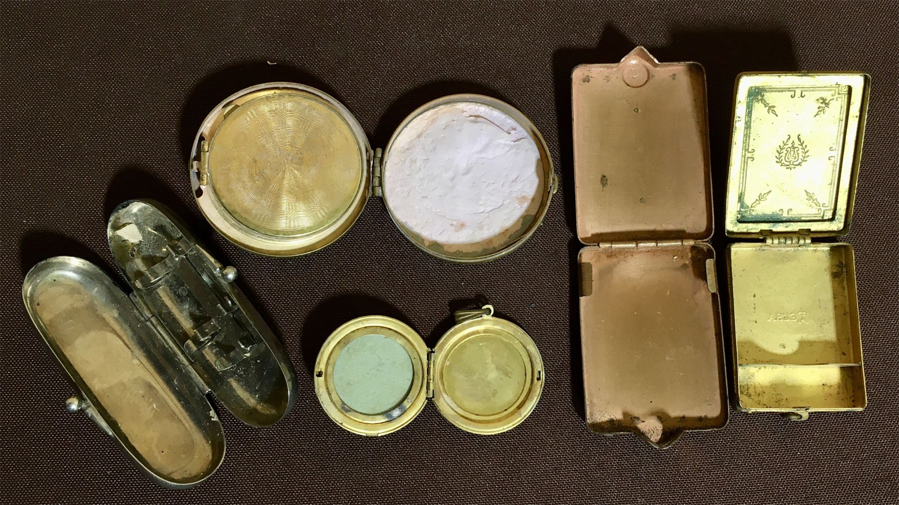 JOB LOT - MISC HOUSEHOLD COLLECTIBLES - COMPACTS, HAIR PINS, LOCKET, ETC.