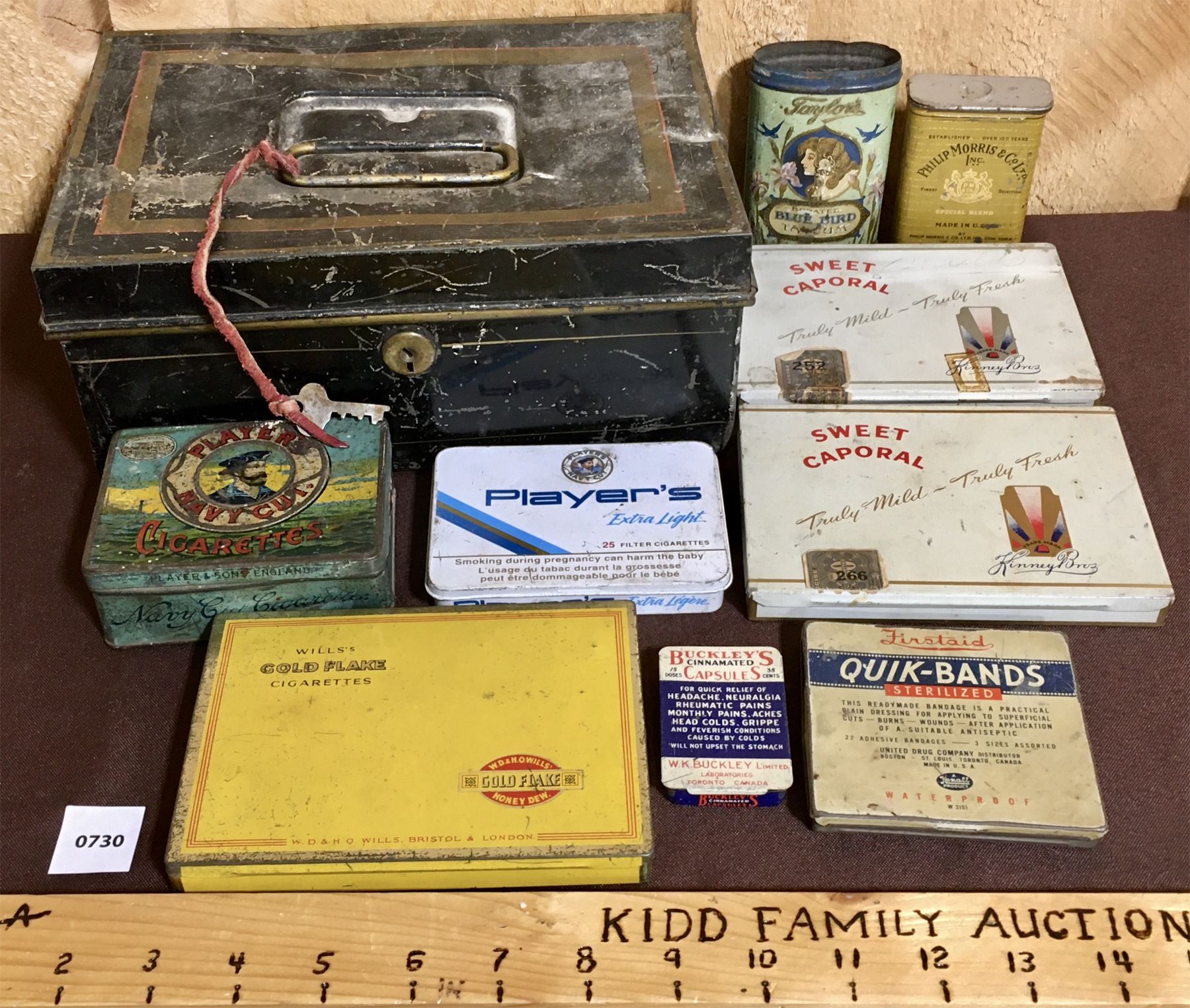 JOB LOT - MISC TINS - INCL CASH BOX W/ KEY