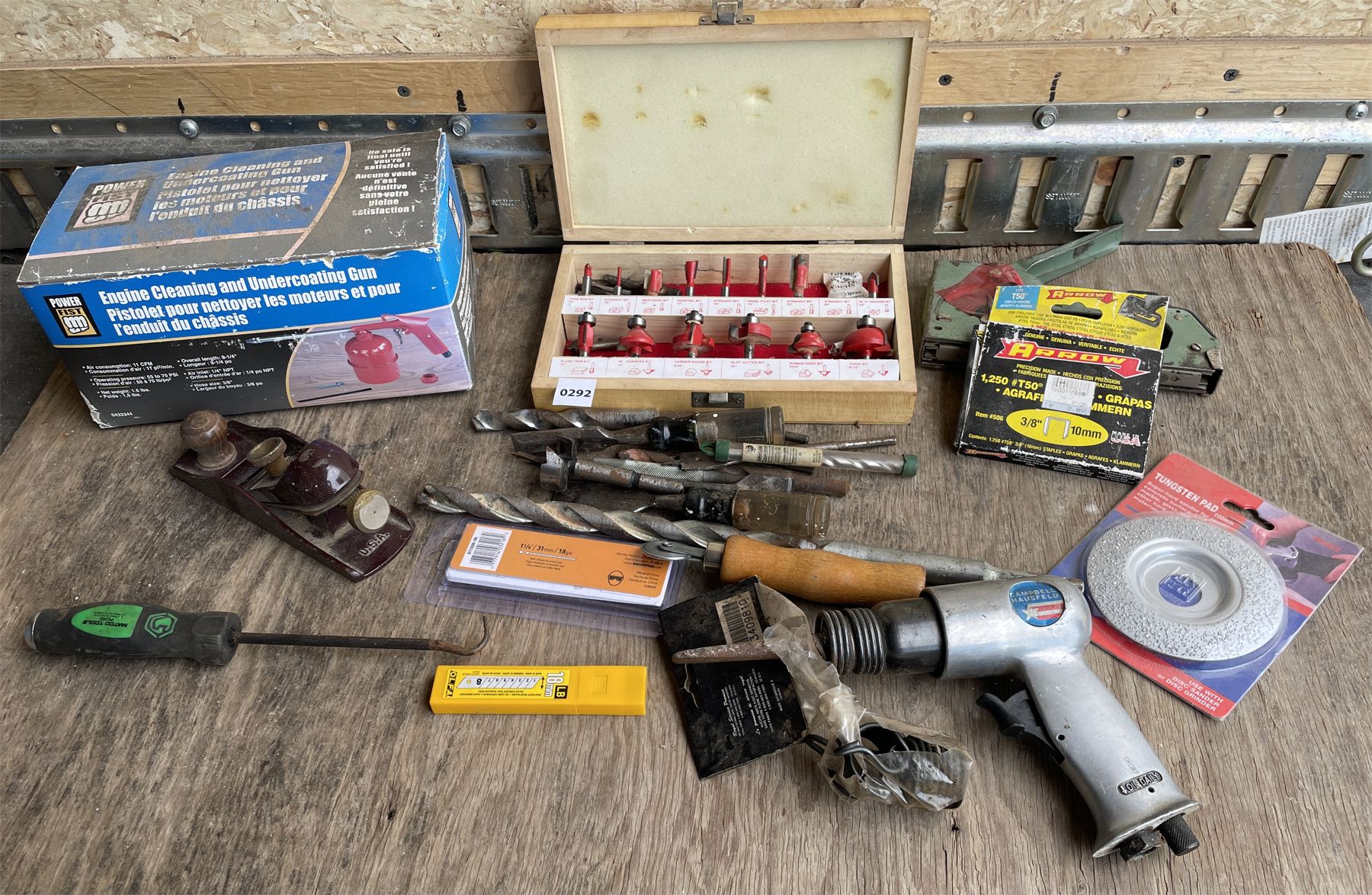 NOTE: AIR GUN, ROUTER BITS, DRILL BITS, ETC