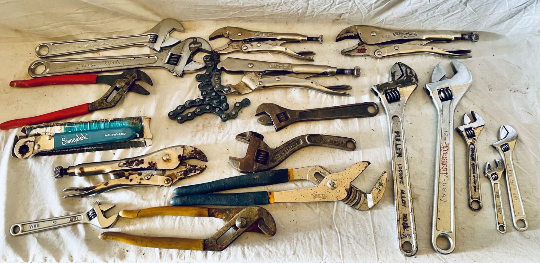 JOB LOT OF VICE GRIPS, ADJ WRENCHES, ETC