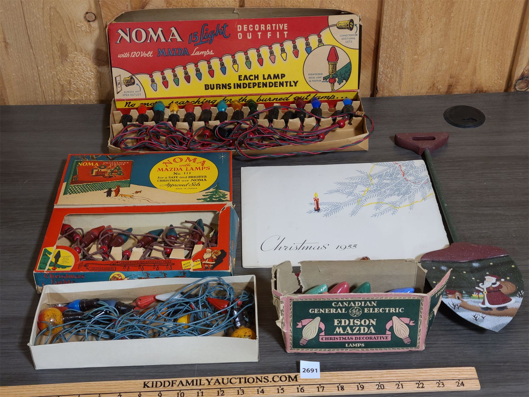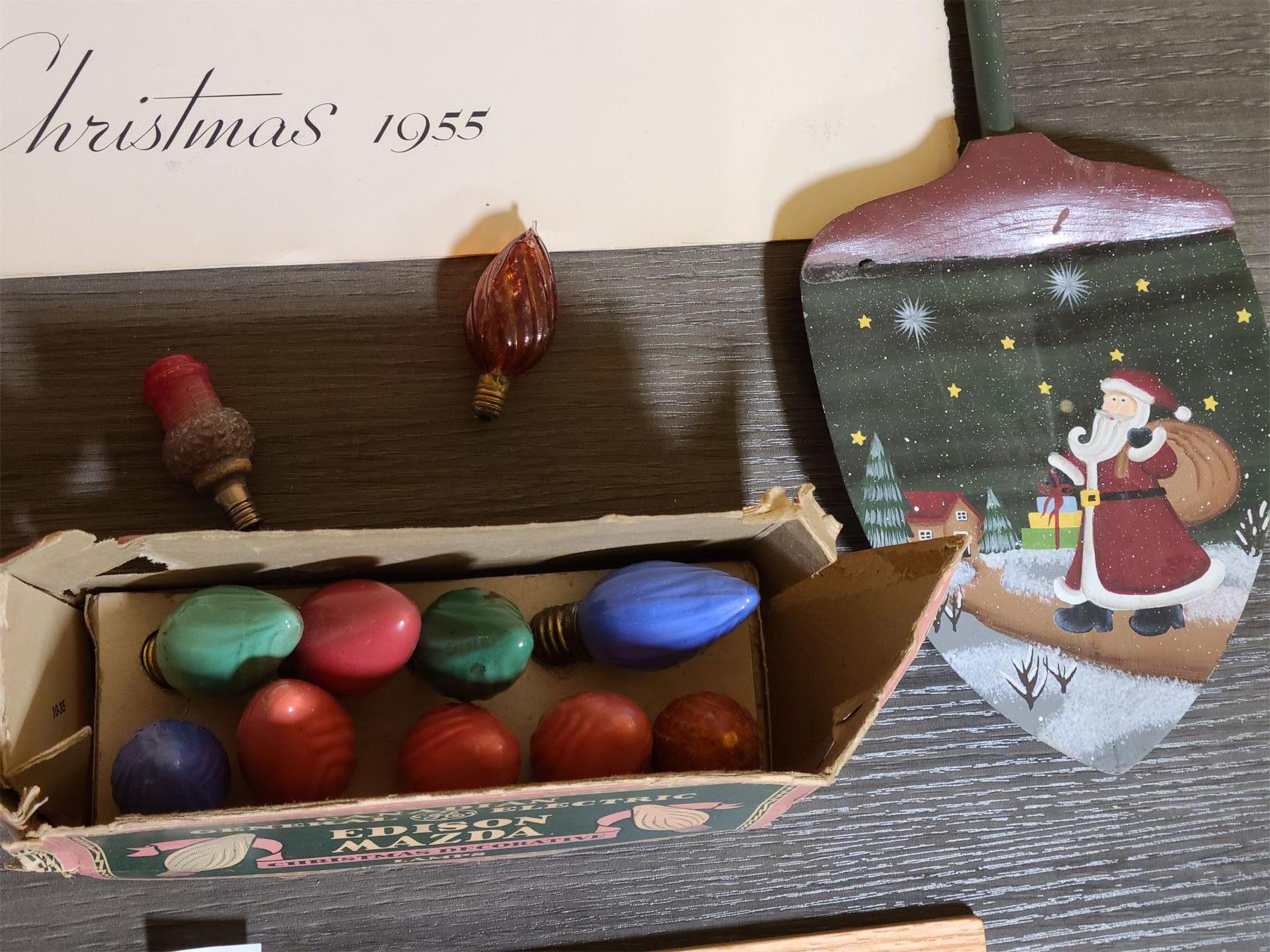 NOTE: BOXES ARE IN POOR CONDITION. ALSO INCLUDES LARGE CHRISTMAS CARD AND DECORATIVE SHOVEL