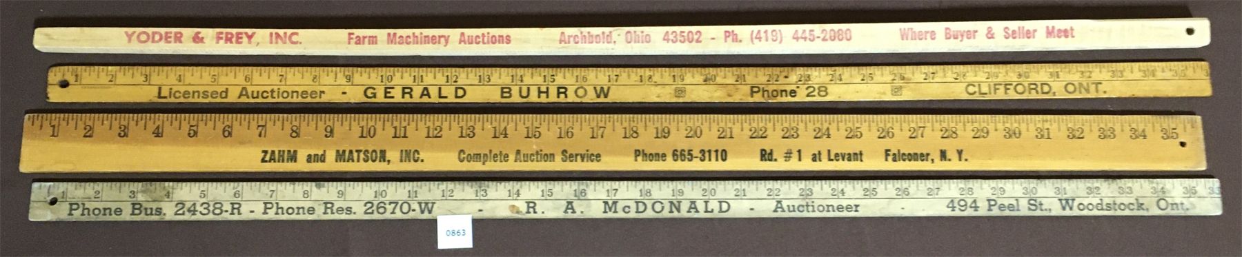 JOB LOT - VINTAGE YARD STICKS - AUCTION COMPANIES - CLIFFORD, NY, WOODSTOCK, OHIO