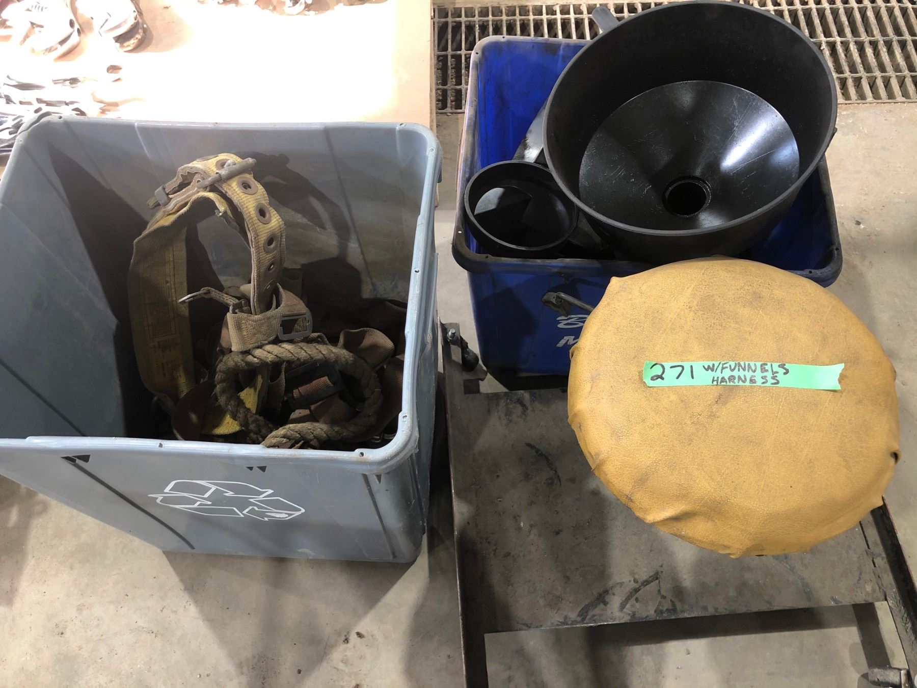 WORK STOOL, SAFETY HARNESS, OIL FUNNELS