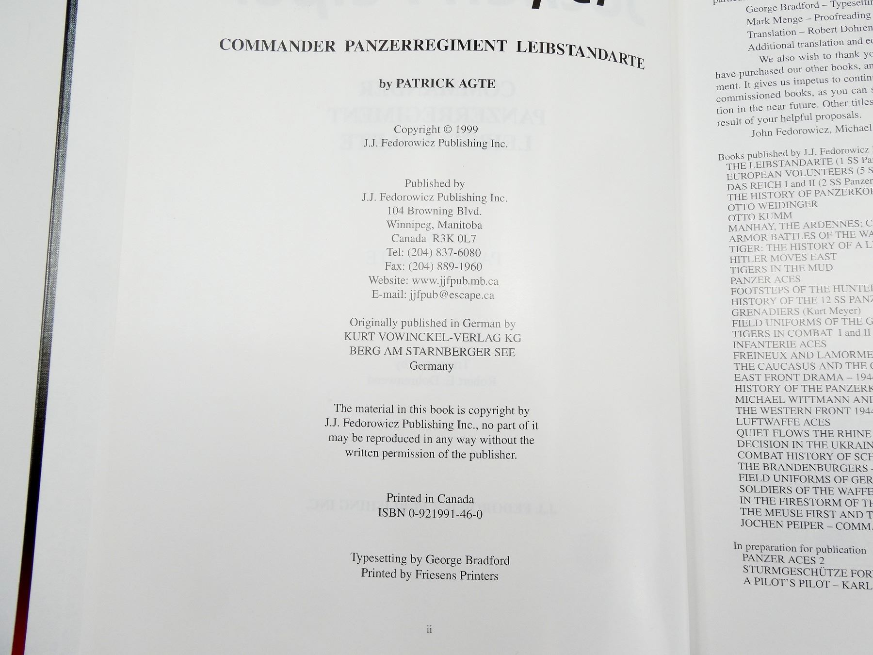 "JOCHEN PEIPER, COMMANDER PANZERREGIMENT LEIBSTANDARTE" BOOK