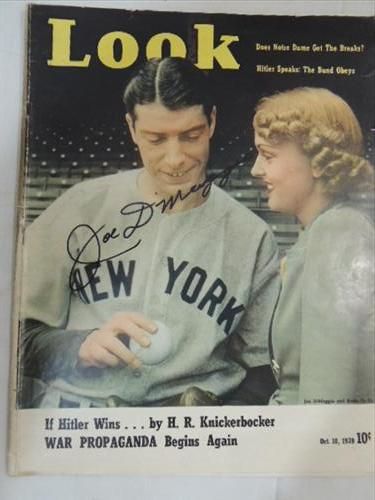 JOE DIMAGGIO SIGNATURE AUTOGRAPH ON 1938 LOOK MAGAZINE. NO COA. AS SHOWN. VIEW PICTURE FOR DETAIL. PLEASE BE ADVISED, AND INFORMED REGARDING SIGNATURES OR AUTOGRAPHS THAT WE SELL AT AUCTION: WE ARE NOT AUTHENTICATORS, AND WE DO NOT AUTHENTICATE, OR VALIDATE ANY AUTOGRAPHS OR SIGNATURES THAT WE OFFER AT AUCTION. SOME AUTOGRAPHS OR SIGNATURES MAY COME WITH AN AUTHENTICATION FROM ANY ONE OF LITERALLY HUNDREDS OF AUTHENTICATORS ACROSS THE COUNTRY, AND AROUND THE WORLD. WE DO NOT ENDORSE ANY AUTHENTICATOR, NOR DO WE GUARANTEE THAT ANY AUTOGRAPH OR SIGNATURE IS AUTHENTIC, OR THAT IT WILL PASS AUTHENTICATION BY ANY AUTHENTICATOR. ALL AUTOGRAPHS OR SIGNATURES ARE SOLD