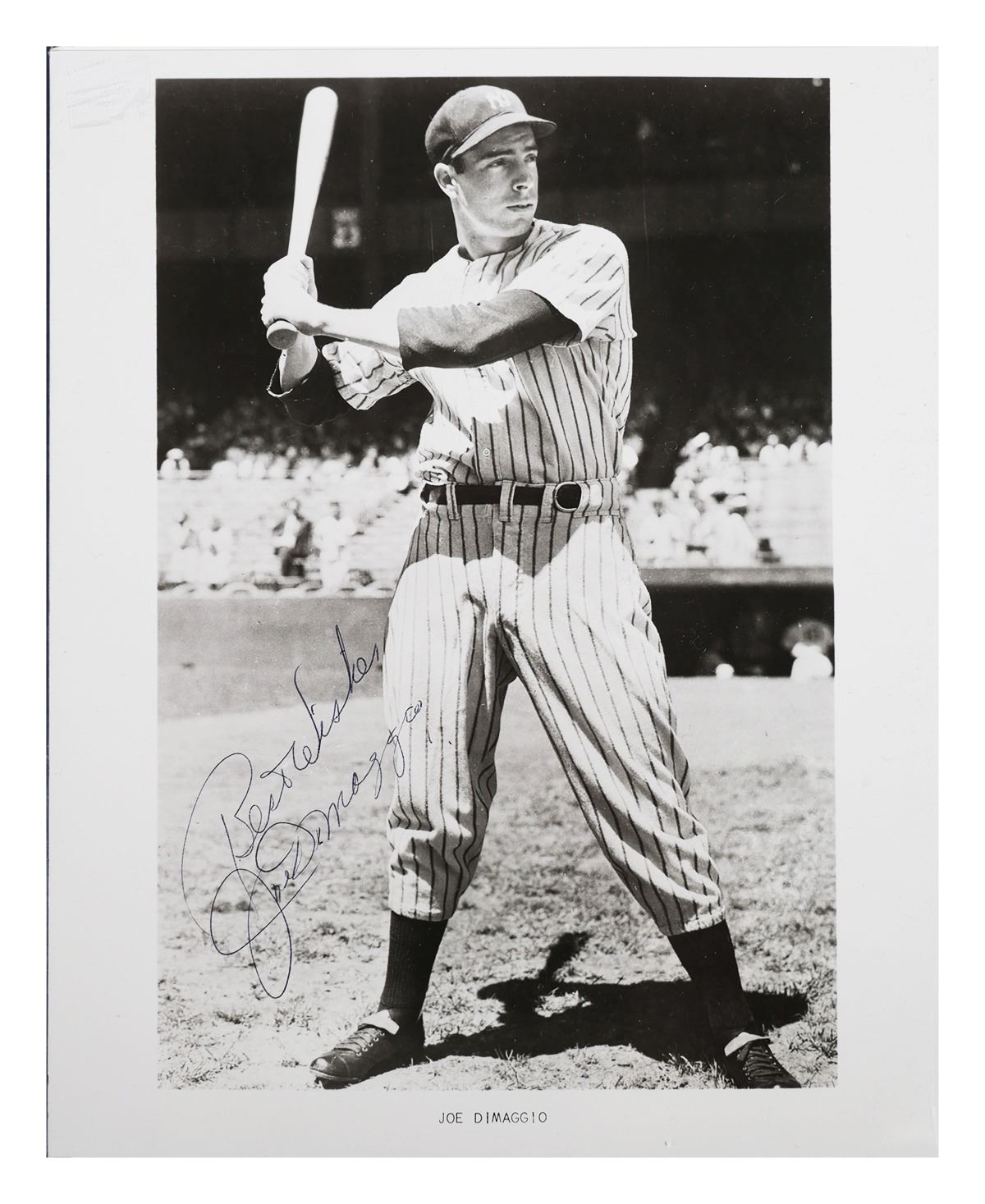 8x10 black and white photo of HOFer Joe DiMaggio, signed in black ink, "Best Wishes, Joe DiMaggio." Comes with directly acquired letter of authenticity from James Spence Authentication. (Blackwell Auctions obtained the authentication.)
