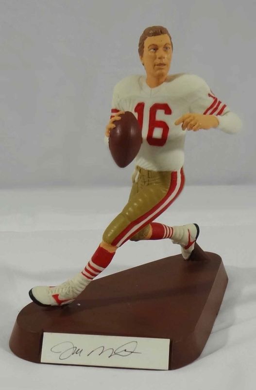 IN ORIGINAL BOX, HAND PAINTED 8" FIGURINE BY SALVINO AUTOGRAPHED BY JOE MONTANA AND #0773 / 2500. NO COA. EST 100.00-150.00