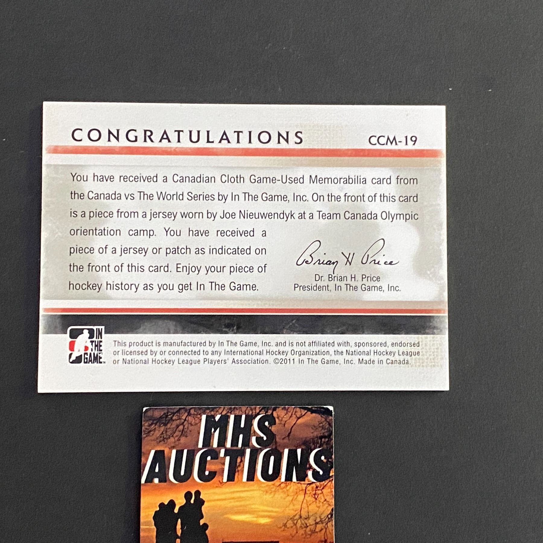 JOE NIEUWENDYK 2011 IN THE GAME JERSEY HOCKEY CARD