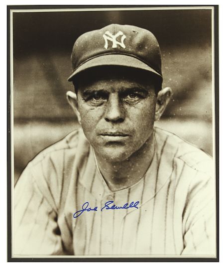 (1898-1990) American baseball legend, and infielder who played with the Cleveland Indians and New York Yankees. Fine S.P. 8" x 10" (sight), a reprint of a vintage sepia image Sewell in head and shoulders wearing Yankees uniform, boldly signed in blue marker at bottom. Tastefully framed in cream mat and wood frame, fine.