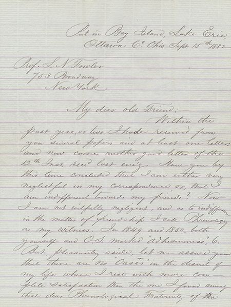 (b. 1821) Eldest son of the abolitionist John Brown. After his father’s actions in “Bloody Kansas”, John Jr. was arrested, mistreated while in prison, and later released. John Jr. might have been aware of the plans for the raid at Harpers Ferry in Virginia. He was not a part of the raid itself, yet he knew all the details and even was part of the process. Lengthy, fine content A.L.S. 3pp. 4to., Bay Island, Lake Erie, Sept. 15, 1882, to Prof. L. Fowler in New York, in small part: "...My dear old Friend, Within the past year or two I had received from you several papers and at least one letter; and now comes nothing...Have you by this time concluded that I am either very neglectful...or that I am indifferent to my friends?...But, pleasantry aside, let me assure you that there are no 'oases' in the desert of my life where I rest with more complete satisfaction than the one I found among that dear Phrenological Fraternity...". Brown continues with bizarre news: "...The brother whose death you refer to in such feeling terms, is one of my two half brothers, who fell in the attack at Harper's Ferry Oct. 1859. Through a strange concurrence of circumstances his remains have come into my possession within the past few days, now nearly 23 years since his death. If I had not long since been a firm believer in Spiritualism, I should have no key to that which in this case I might say is stranger than fiction...". With more friendly content, near fine condition, with original envelope.
