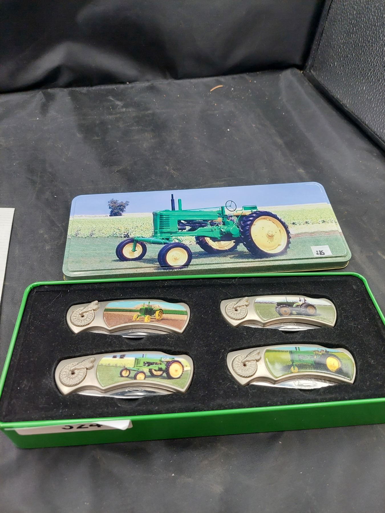 JOHN DEERE 4 PIECE POCKET KNIFE COLLECTION IN TIN