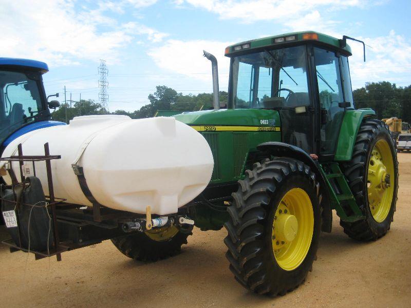 JOHN DEERE 7410 MFWD FARM TRACTOR, S/N C001765 (97 YR) 3 PTH, PTO, REMOTE HYD,M ECAB W/AIR, SPRAY TANK