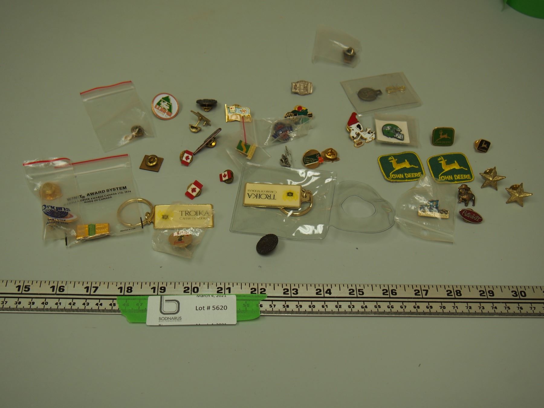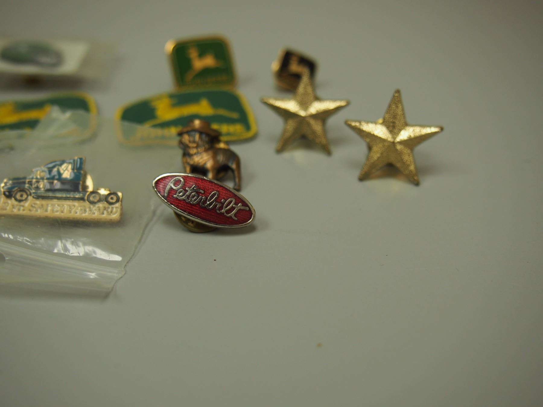 JOHN DEERE PINS, PETER BUILT, MACK PINS, JOHN DEERE PATCHES & OTHER PINS