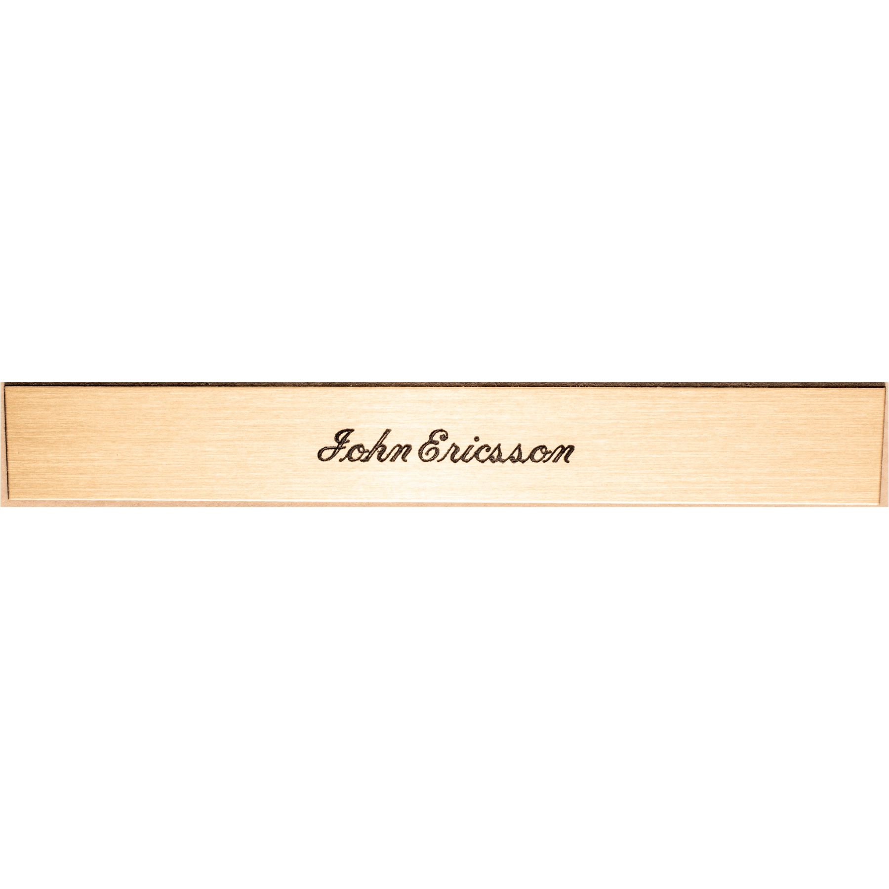 c. 1860s Civil War Era, Carte-de-visite Photograph Inscribed and Signed on its reverse, “Miss A. Smith from J. Ericsson” on the verso, measuring 2.5” x 4”, framed to 8.5” x 10.75”, Very Fine. John Ericsson, Swedish-born American naval engineer and inventor who built the first armored turret warship and developed the screw propeller. This three-quarter length Portrait of Ericsson in his dark frock coat, looking to his right; his arms are folded and he sports “mutton chop” whiskers. There are a few trivial voids to the albumen at the extreme top edge, not affecting the image. Overall, a good contrast photo image and a rarity being signed on the back side. American Book Prices Current lists no signed photographs of Ericsson as having sold since 1975. EAHA originally offered this “J. Ericsson” Carte-de-Visite Photograph Inscribed and Signed in our August 25, 2001 sale where it sold for $2,415. Modern professionally matted and framed under special UV Plexiglas with a engraved brass plaque below. We have not seen any other anywhere since, during the past 22 years.