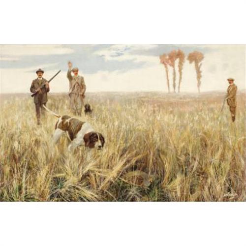 <B>JOHN G. SOWERBY (British, 1850-1914)</B></I><BR><I>Hunting Quail</B></I><BR>Oil on canvas<BR>31 x 48 inches (78.7 x 121.9 cm)<BR>Signed lower right:<I> John Sowerby</B></I><BR> <B>Condition Report:</B> Canvas has been relined, otherwise good condition.<BR><BR><b>Shipping:</b> Requires 3rd Party Shipping (<a target="_blank" href="http://www.heritageauctions.com/common/shipping.php">view shipping information</a>)