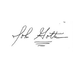 <b>1474. JOHN GOTTI</b> (1940 - 2002) Dapper American gangster who won the nickname "The Teflon Don" following his many acquittals, headed the Gambino Family following the murder of Paul Castellano, finally convicted and jailed on the testimony of his one-time friend, Sammy "The Bull" Gravano. Rare full signature "<i>John Gotti</i>" with paraph, removed from a letter sent by Gotti from prison in Marion. Fine.<b> $500-700</b>