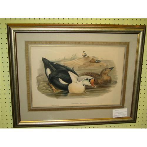 A VERY HANDSOME 'JOHN GOULD' LITHOGRAPH TITLED 'SOMATERIA SPECTABILIS' WITH ORIGINAL COLORING AND BEAUTIFUL DETAIL. IT HAS BEEN RE-MATTED AND FRAMED IN A LOVELY SILVER GILT WOOD FRAME WHICH MAKES THE LITHO REALLY STAND OUT BEAUTIFULLY. A GREAT ADDITION TO YOUR WALL ART!