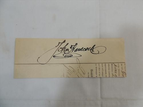 JOHN HANCOCK CUT SIGNATURE AUTOGRAPH NO COA. AS SHOWN. VIEW PICTURE FOR DETAIL. PLEASE BE ADVISED, AND INFORMED REGARDING SIGNATURES OR AUTOGRAPHS THAT WE SELL AT AUCTION: WE ARE NOT AUTHENTICATORS, AND WE DO NOT AUTHENTICATE, OR VALIDATE ANY AUTOGRAPHS OR SIGNATURES THAT WE OFFER AT AUCTION. SOME AUTOGRAPHS OR SIGNATURES MAY COME WITH AN AUTHENTICATION FROM ANY ONE OF LITERALLY HUNDREDS OF AUTHENTICATORS ACROSS THE COUNTRY, AND AROUND THE WORLD. WE DO NOT ENDORSE ANY AUTHENTICATOR, NOR DO WE GUARANTEE THAT ANY AUTOGRAPH OR SIGNATURE IS AUTHENTIC, OR THAT IT WILL PASS AUTHENTICATION BY ANY AUTHENTICATOR. ALL AUTOGRAPHS OR SIGNATURES ARE SOLD