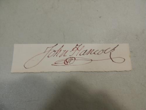 JOHN HANCOCK CUT SIGNATURE AUTOGRAPH NO COA. A SSHOWN. VIEW PICTURE FOR DETAIL. PLEASE BE ADVISED, AND INFORMED REGARDING SIGNATURES OR AUTOGRAPHS THAT WE SELL AT AUCTION: WE ARE NOT AUTHENTICATORS, AND WE DO NOT AUTHENTICATE, OR VALIDATE ANY AUTOGRAPHS OR SIGNATURES THAT WE OFFER AT AUCTION. SOME AUTOGRAPHS OR SIGNATURES MAY COME WITH AN AUTHENTICATION FROM ANY ONE OF LITERALLY HUNDREDS OF AUTHENTICATORS ACROSS THE COUNTRY, AND AROUND THE WORLD. WE DO NOT ENDORSE ANY AUTHENTICATOR, NOR DO WE GUARANTEE THAT ANY AUTOGRAPH OR SIGNATURE IS AUTHENTIC, OR THAT IT WILL PASS AUTHENTICATION BY ANY AUTHENTICATOR. ALL AUTOGRAPHS OR SIGNATURES ARE SOLD
