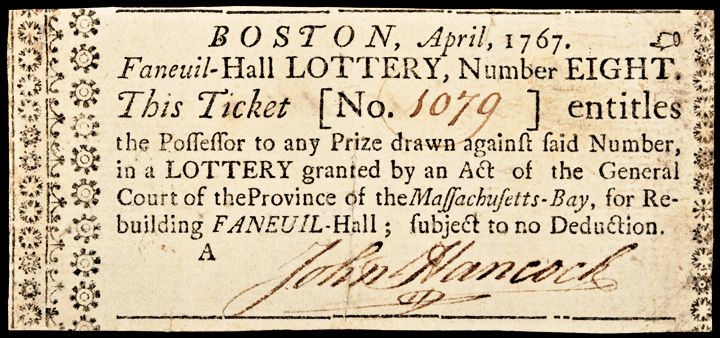 JOHN HANCOCK, Signed 1767 Faneuil-Hall Boston LOTTERY TICKET