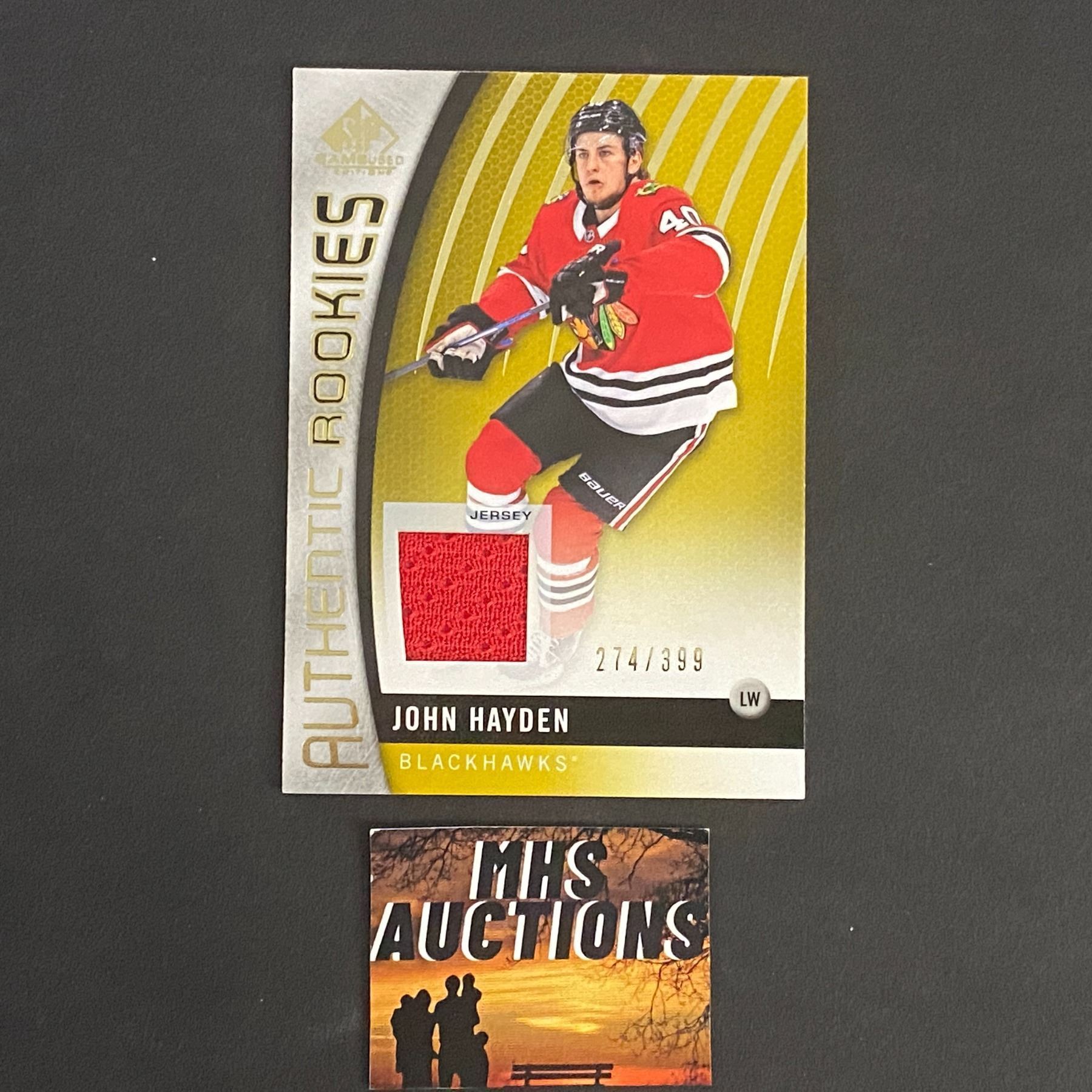 JOHN HAYDEN 2017-18 ROOKIE SP GAME USED BLACKHAWKS JERSEY CARD