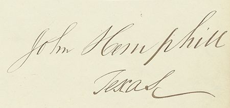 (1803-1864) U.S. Senator from Texas, Chief Justice of that state and key player in the Indian Wars. Bold signature on a small sheet adding "Texas", fine.